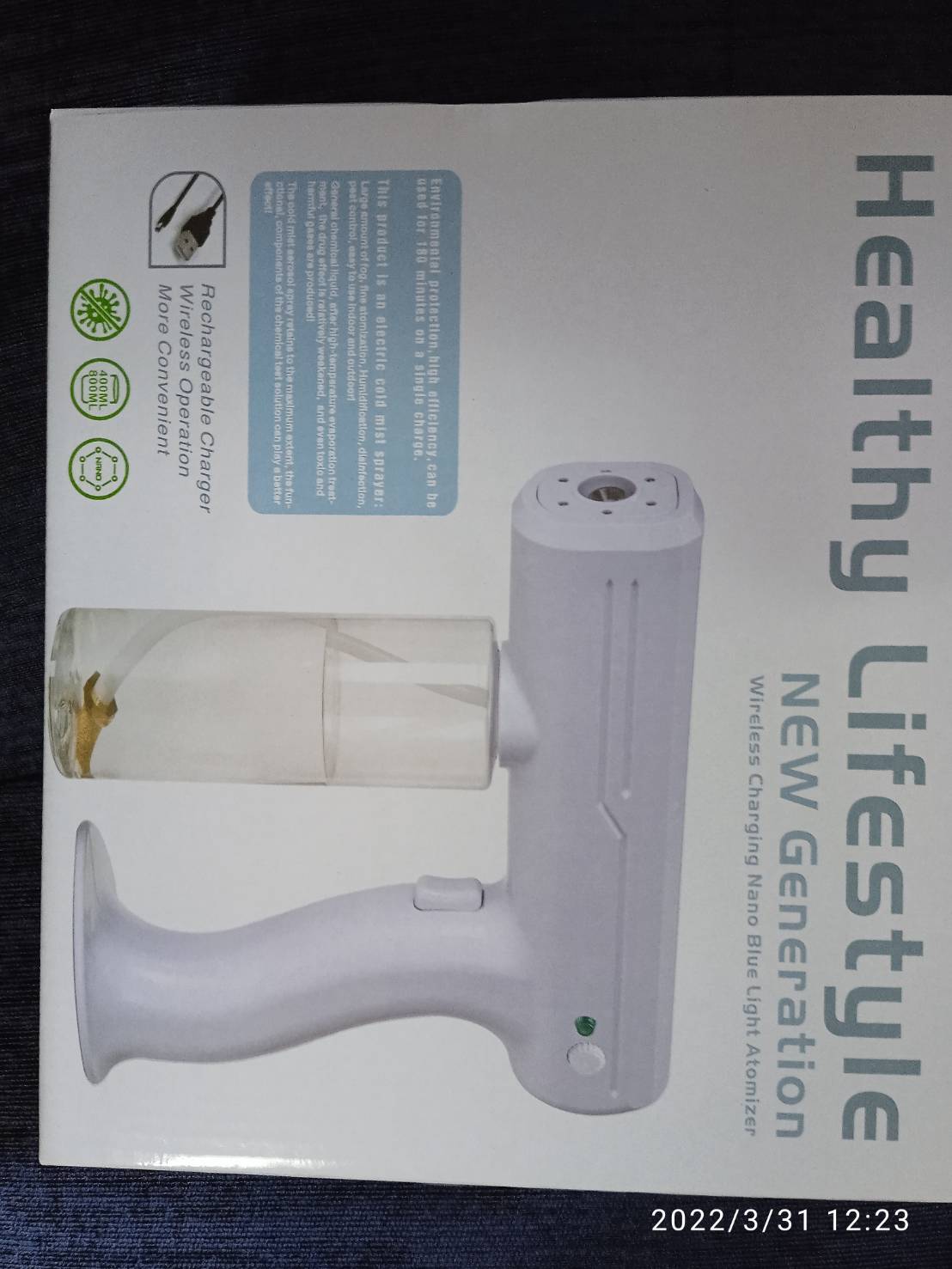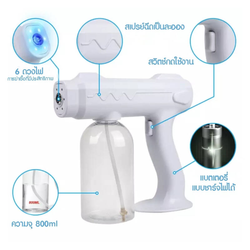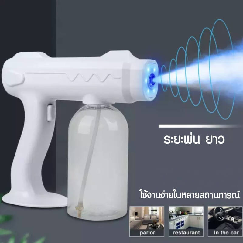 ปืนพ่นสเปรย์ ใส่ alcoholได้ และสามารถใส่น้ำยาฆ่าเชื้อได้ สุดคุ้ม เครื่องพ่น เครื่องพ่นฆ่าเชื้อ เครื่องพ่นแอลกอฮอล์ เครื่องพ่นไร้สาย Healthy lifestyle ปืนพ่นสเปรย์ ใส่ alcoholได้ และสามารถใส่น้ำยาฆ่าเชื้อได้(ใช้แอลกอฮอล ได้) ไร้สายยกไปไหนก็ได้ เครื่องพ่นสเปรย์ Healthy lifestyle ฉีดพ่นละอองไอน้ำขนาดเล็ก สามารถฉีดพ่น ฆ่าเชื้อในบ้าน รถยนต์ ออฟฟิส ไม่เปียก แล้วแต่วัตถุประสงค์ที่ลูกค้านำไปใช้ไร้สาย สะดวกสะบาย ตัวเครื่อง -น้ำหนักเบาเพียง 550g -กำลังไฟ 10w -ทำงานได้ 2ชั่วโมง ต่อ 1การชาร์จ -ไรสาย -หัวปลั้กไทย ใส่กับปลั้กทั่วไปได้เลย -บรรจุน้ำได้ 800 ML -ไฟแสดงสถานะพร้อมใช้งาน -ไฟ blue led ligth ช่วยยับยั้งฆ่าเชื้อได้อีกด้วย -ความจุแบตเตอรี่ 4800mAh