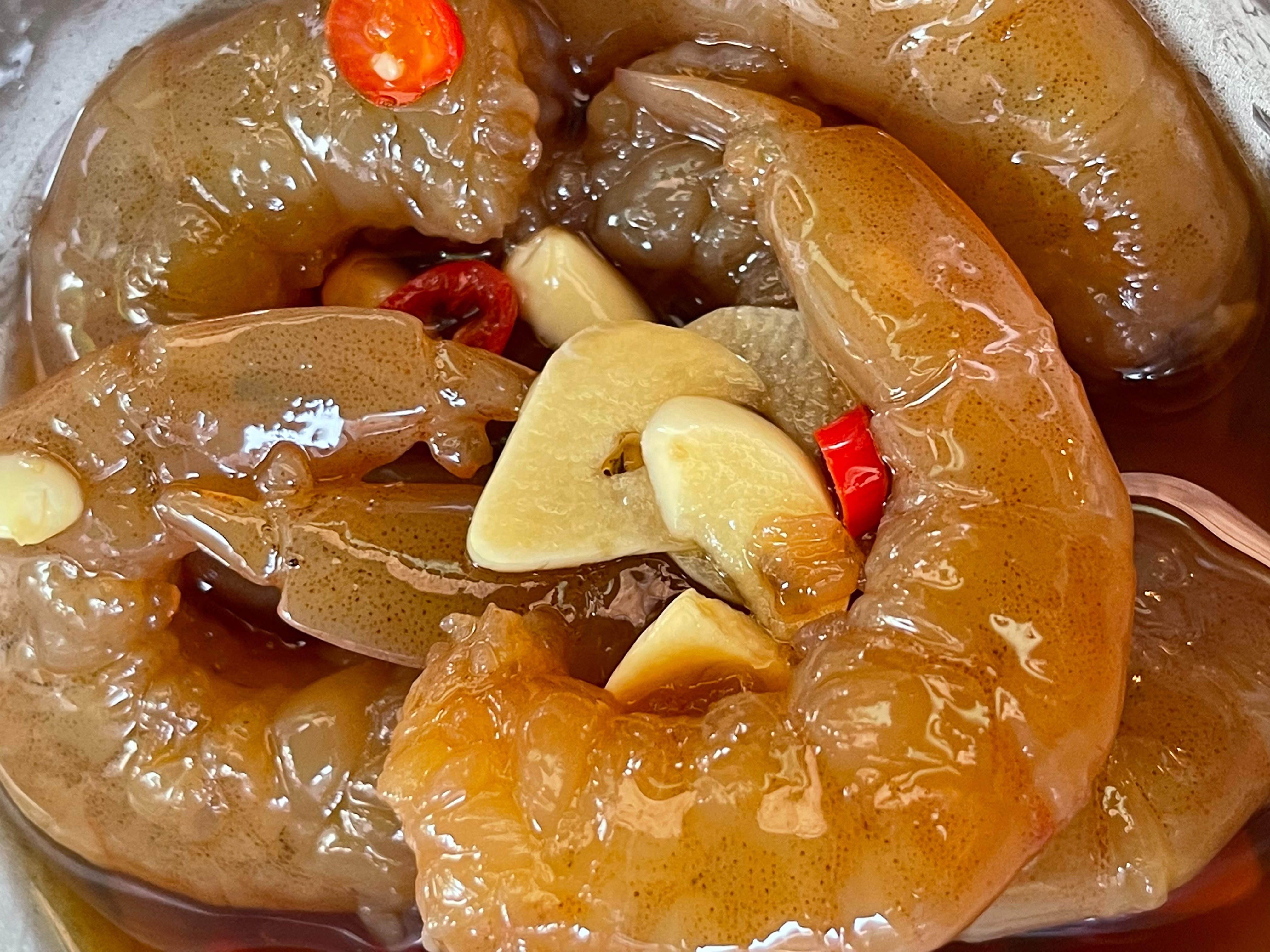 กุ้งดองซอสสูตรพิเศษของทางร้าน หอม อร่อย ไม่มีสารกันบูด ไม่ใส่ผงชูรส เหมาะสำหรับทุกวัย