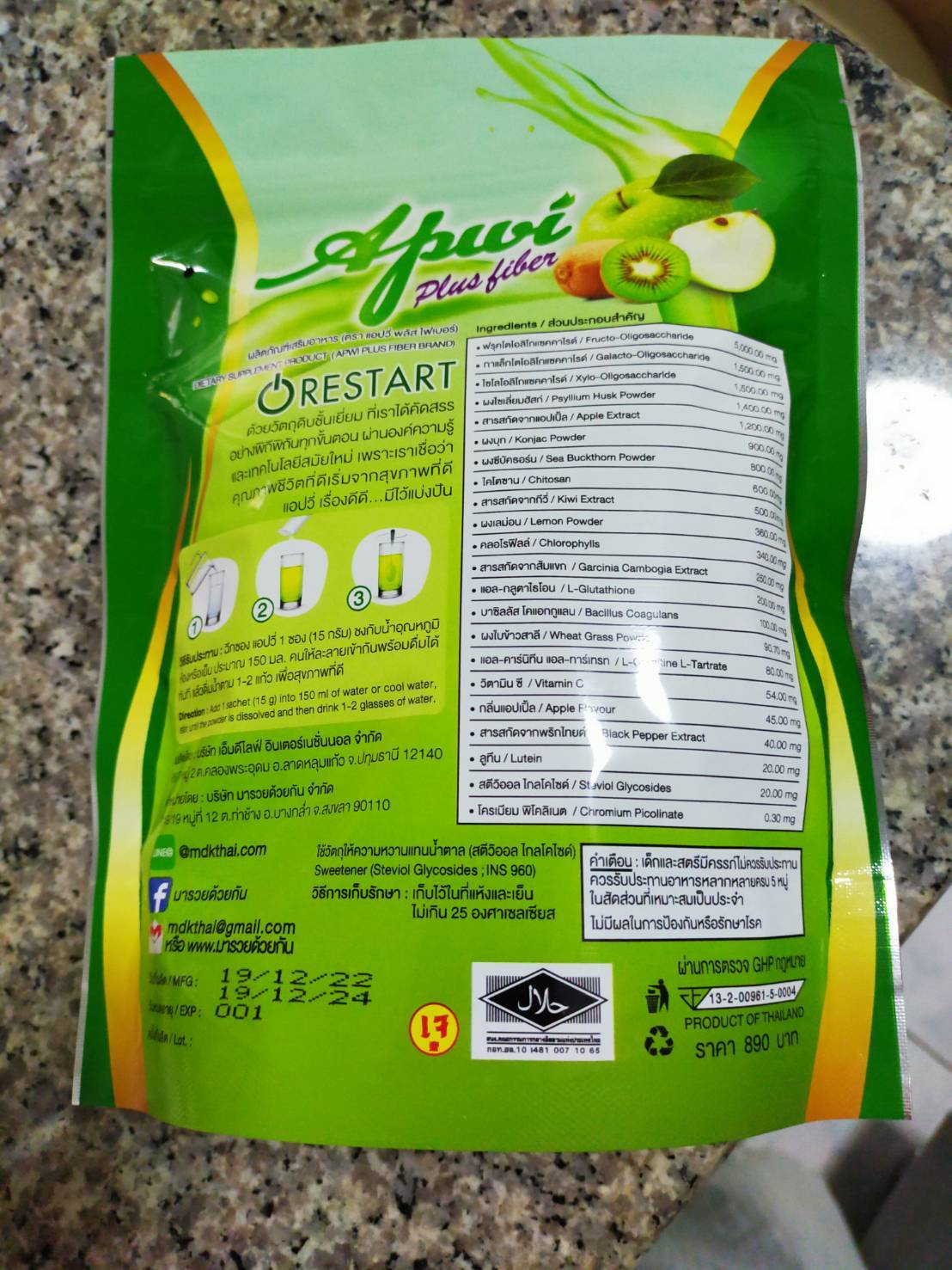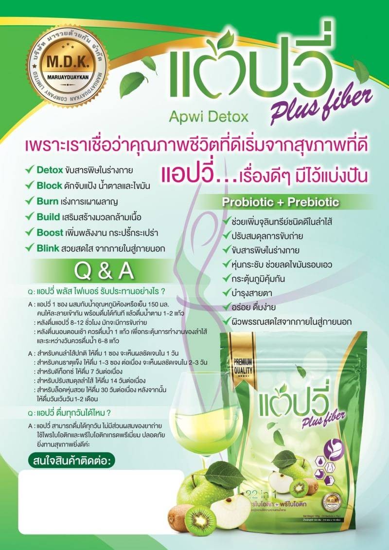 ดีท๊อกซ์ ล๊อคหุ่นสวย สายตาและผิวพรรณ ช่วยเพิ่มจุลินทรีย์ชนิดดีในลำไส้ มีใยอาหารสูง ช่วยกระตุ้นการขับถ่าย เลขที่อย, : 13-2-00961-5-0004