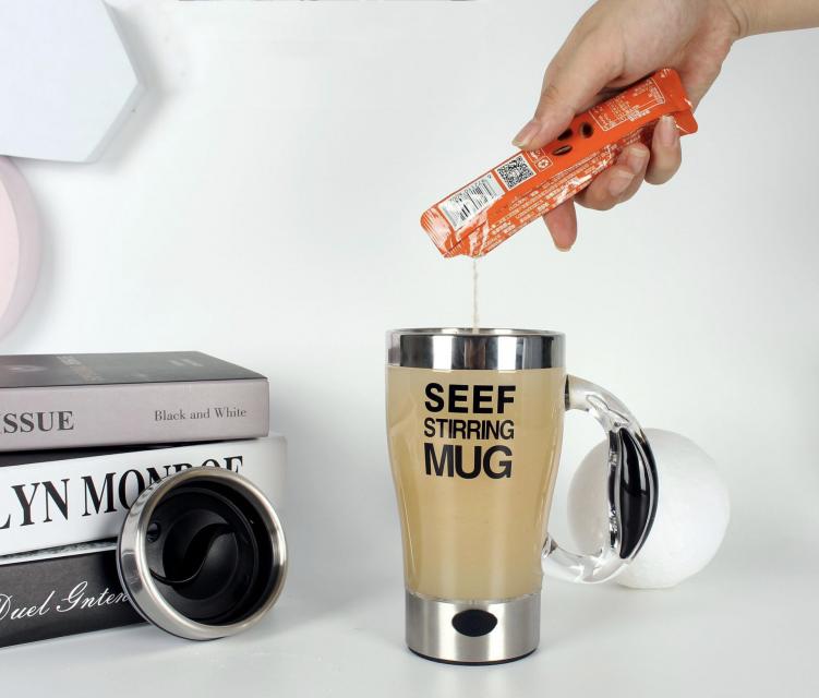Seef stirring mug /แก้วปั่นอัตโนมัติ แก้วชงเครื่องดื่มได้โดยไม่ต้องคน ให้ยุ่งยาก ชงเครื่องดื่มได้หลากหลายชนิดเช่น กาแฟ ชา ช็อกโกแล็ต และปั่นโปรตีน ปั่นเวย์ ฯลฯ ใช้งานง่ายเพียง 4 ขั้น ตอน เติม เท ปิด กด เพียงเท่านี้คุณก็ได้เครื่องดื่มที่ชื่นชอบแบบไม่ต้องคน ให้ยุ่งยากอีกต่อไป ตัวคนช่วยตีละลายผงเครื่องดื่ม ไม่ให้เป็นก้อนใต้ก้นแก้ว มีฝาปิดกันหก ขนาดพกพาสะดวก พร้อมหูจับง่ายสะดวกต่อการถือดื่ม สามารถล้างทำความสะอาดได้ง่ายหลังการใช้งาน คุณสมบัติ -แก้วชงเครื่องดื่มอัตโนมัติ สามารถชงเครื่องดื่มได้มากมายหลากหลาย -สามารถชง กาแฟ,ชา,ช็อกโกแล็ต,ปั่นโปรตีน,ปั่นเวย์ ฯลฯ -ช่วยในการชงเครื่องดื่ม ให้ละลาย ไม่เป็นก้อนใต้ก้นแก้ว -มีฝาปิดกันหก พกพาสะดวก พร้อมหูจับง่ายสะดวกต่อการถือ -สะดวกรวดเร็วประหยัดเวลาในการชงเครื่องดื่ม -สามารถล้างทำความสะอาดง่าย และนำกลับมาใช้งานใหม่ได้ยาวนาน -ใช้งานพลังถ่าน 3A จำนวน 2 ก้อน