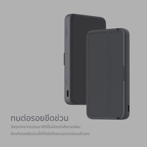 แบตเตอรี่สำรองความจุ 10000 mAh ดีไซน์ใหม่ล่าสุด วัสดุทำจากหนัง PU และพลาสติก ABS ทำให้ดูพรีเมี่ยมมากขึ้น Magnetic Cover ฝาปิดตัวเก็บสายใช้งานได้ง่ายดาย ด้วยระบบแม่เหล้ก มีสายชาร์จในตัว 2 พอร์ต Type C และ L Cable รองรับเทคโนโลยีการชาร์จ PD และ QC 3.0 สูงสุด 20W ตอบโจทย์ทุกอุปกรณ์ ที่รองรับชาร์จเร็วยุคใหม่นี้ สามารถเขย่าเพื่อเช็คสถานะแบตเตอรี่คงเหลือได้ Input Type-C 20W ชาร์จตัวแบตสำรองได้รวดเร็วยิ่งขึ้น มีไฟ LED แสดงสถานะการทำงานและปริมาณความจุของแบตเตอรี่สำรอง มีไฟสีเขียว แสดงสถานะ Quick Charge/Fast Charge ระบบความปลอดภัย ตัดไฟอัตโนมัติเมื่อชาร์จเต็ม ป้องกันไฟกระชาก ได้รับมาตรฐานสากล CE, FCC, RoHS, มอก.