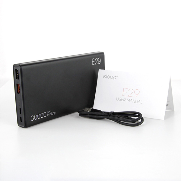 อุปกรณ์ภายในกล่อง แบตสำรอง Eloop E29 30000 mAh สายชาร์จ Type-c คู่มือการใช้งาน สินค้ามี Code ขูดรหัสเช็คของแท้ได้ สินค้าถูกจัดจำหน่ายโดยบริษัทนำเข้าถูกต้อง ของแท้ 100%