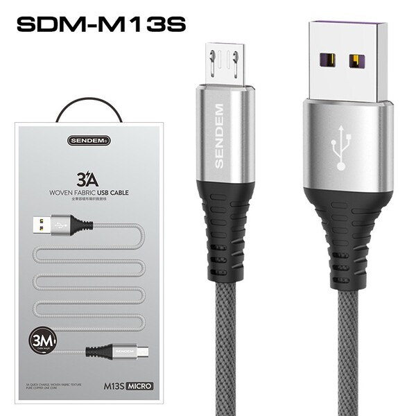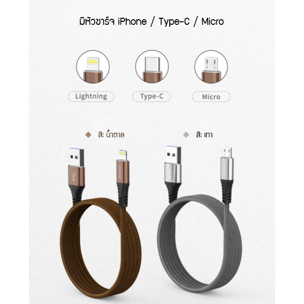 Model: M13S Output: 3A Material:-Pure Copper + Woven Fabric สายยาว: 3M power failure protection: มีระบบป้องกันไฟฟ้าขัดข้อง หัวชาร์จมี: Lightning/Micro/Type-C