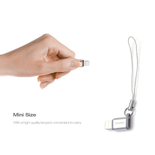 เป็นอุปกรณ์แปลงจาก Micro เป็นพอร์ต Lightning ใช้งานเชื่อมต่อกับอุปกรณ์ได้หลากหลาย รองรับกระแสไฟ 3.0A และยังสามารถถ่ายโอนข้อมูลได้อีกด้วย (Data Cable) ขนาดเล็ก น้ำหนักเบา เป็นพิเศษ พกพาสะดวกได้ทุกที่ วัสดุทำจาก Aluminum Alloy มีสายคล้อง พกพาสะดวก หมดปัญหาต้องพกสายชาร์จหลายเส้น