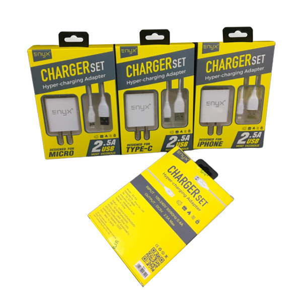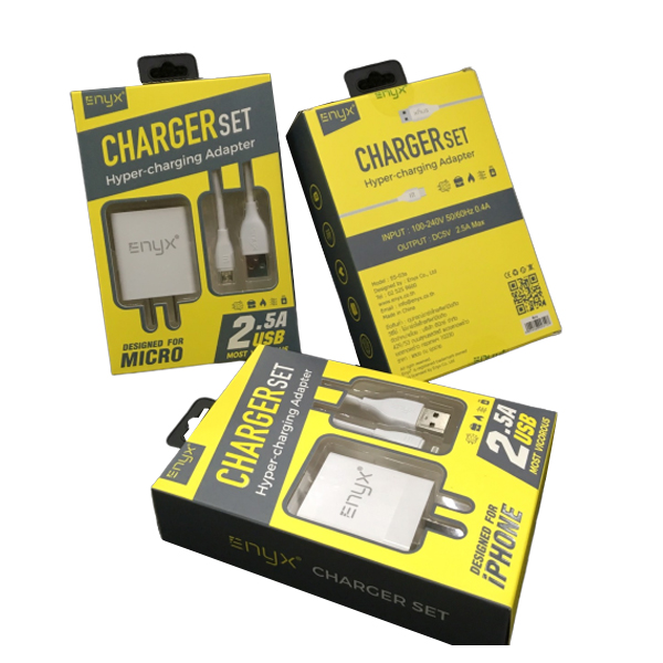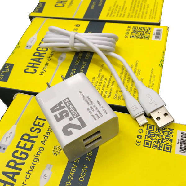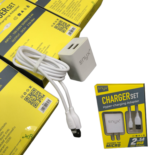 อุปกรณ์ภายในกล่อง ENYX Adapter 2.5A 2 USB สายชาร์จ
