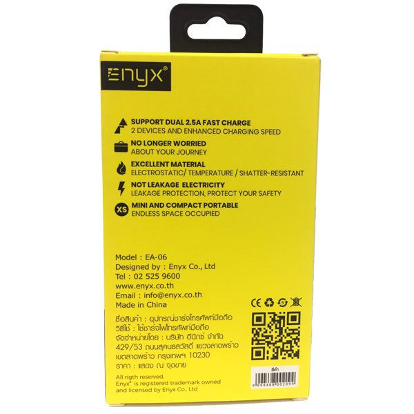 อุปกรณ์ภายในกล่อง ENYX EA-06 Adapter 2.5A Smarter 2 USB
