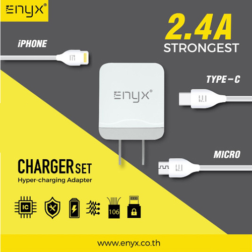 อุปกรณ์ภายในกล่อง ENYX Adapter 2.4A สายชาร์จ