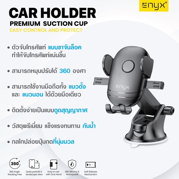 อุปกรณ์ภายในกล่อง ที่ยึดมือถือในรถ ENYX EH06 Car holder Premium Suction Cup