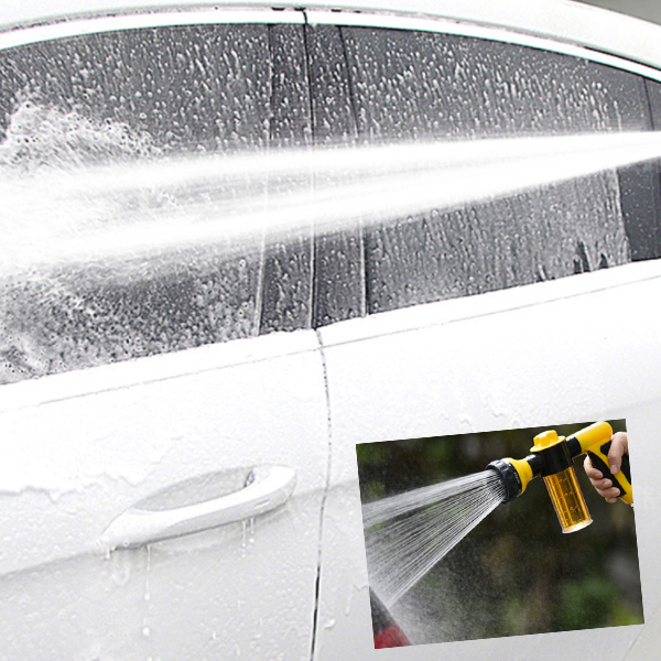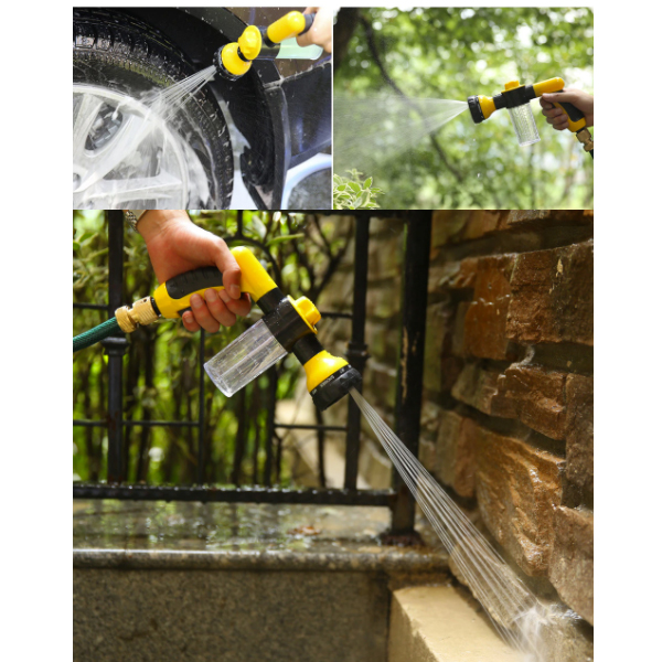 หัวฉีดน้ำล้างรถ มีกระบอกใส่น้ำยาล้างรถฉีดเป็นโฟมได้ สามารถปรับ ให้พ่นแต่น้ำ หรือ โฟมได้ โดยการหมุมเกลียวที่ด้านบน สามารถปรับการฉีดน้ำได้หลายแบบถึง 8 แบบ ให้เหมาะกับการใช้งานนั้นๆ ใช้งานง่าย ติดตั้งง่าย น้ำหนักเบา พกพาใส่รถได้สะดวก