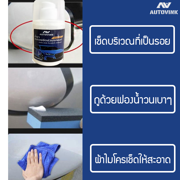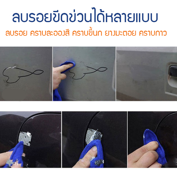 เนื้อครีมเข้มข้นสูตรพิเศษจากทางแบรนด์ ลบรอยได้เป็นอย่างดี ใช้งานง่าย น้ำยาจะช่วยลบรอยขนแมว รอยเบียด รอยเฉี่ยวชน รอยขูดขีดที่ยังไม่ลึกเข้าถึงเนื้อสี ไม่ต้องทำสีใหม่ ลบรอยคราบต่างๆ ที่เป็นปัญหากวนใจ เช่น คราบละอองสี คราบขี้นก ยางมะตอย คราบกาว ฯลฯ ใช้ได้กับผิววัสดุ ไม่ว่าจะเป็น ผิวสีรถ ล้อแม็กซ์ โครเมียม อะลูมิเนียม สแตนเลส ทองเหลือง ทองแดง ฯลฯ ไฟหน้าเหลืองหมองคล้ำ ใช้น้ำยาเช็ดให้ใสได้ น้ำยาเป็นเนื้อครีมเข้มข้นไม่กัดสีรถยนต์ ไม่ทำลายสี รถไม่เป็นคราบด่าง เนื้อของน้ำยาบางเบามีความละเอียดไม่ก่อให้เกิดระคายเคืองกับผิววัสดุ ใช้งานง่ายไม่วุ่นวาย ไม่ต้องเข้าร้านทำสีใหม่