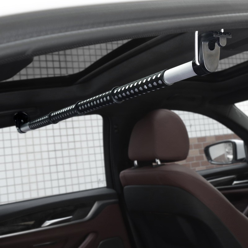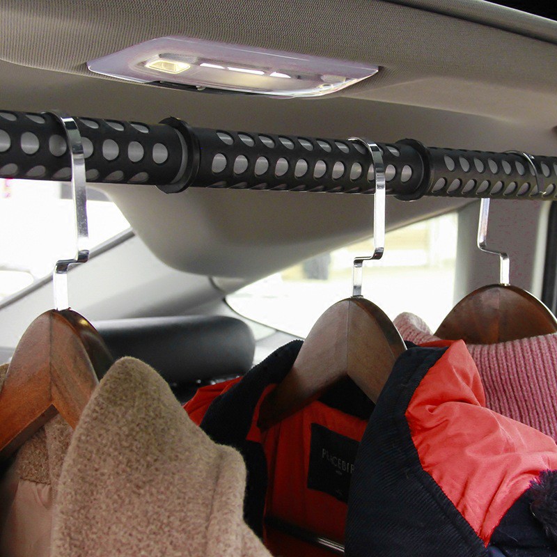 ผลิตจากวัสดุที่มีความแข็งแรง ทนทาน หุ้มด้วยยางกันลื่นไม่ให้ผ้าหรือสิ่งของเลื่อนมากองรวมกัน สะดวกสบายในการแขวนเสื้อผ้าใส่ออกงาน หรือเมื่อรับเสื้อผ้ามาจากร้านซักรีด ติดตั้งได้ง่ายดายเพียงแค่แขวนไว้กับที่จับหรือตะขอทั้งสองข้างของรถ ราวแขวนผ้าในรถ รองรับการใช้งานกับรถยนต์ทุกรุ่น ปรับความสั้นยาวได้ เพียงหมุนสไลด์แท่งเหล็กด้านในออกให้เหมาะกับด้านในรถ