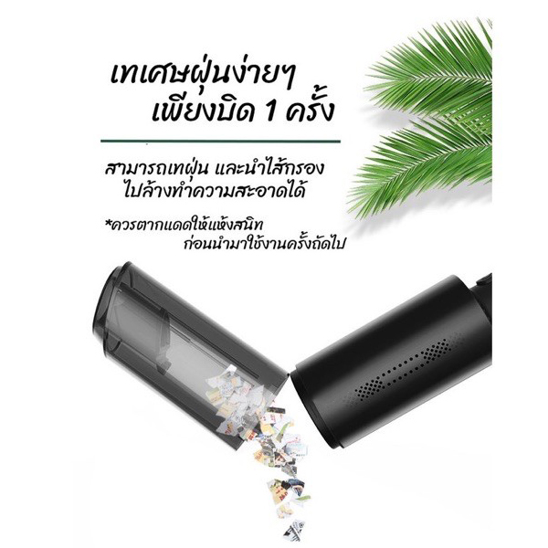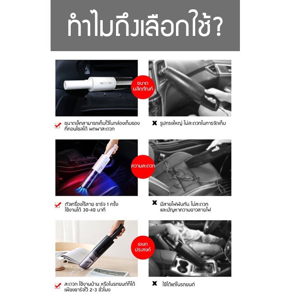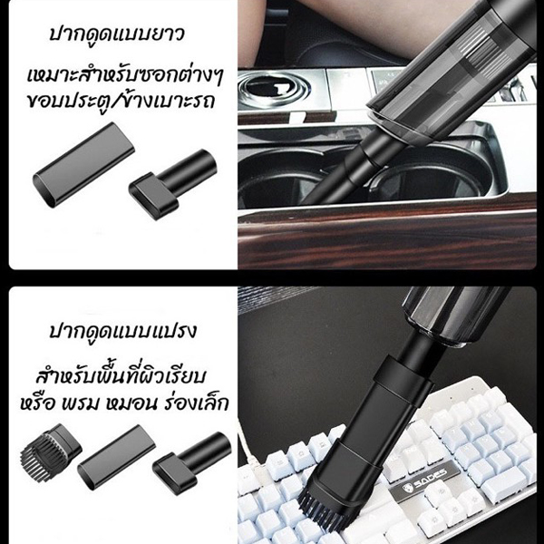 เหมาะสำหรับใช้ดูดฝุ่นในรถยนต์ บ้านและที่ทำงาน หรือในทุกๆที่ ที่ต้องการ ไส้กรอง สามารถล้างน้ำได้ และนำมาใช้ซ้ำได้ ออกแบบทันสมัยสวยงามแบบเรียบๆดูน่าใช้งาน หัวดูดมีมาให้เปลี่ยนใช้งานได้หลากหลายเพิ่มขึ้น ไส้กรอง กรองฝุ่นขนาดเล็กมากๆได้ ไรฝุ่นได้ พลังดูดเพียงพอกับการเก็บฝุ่นขนาดเล็กถึง กลาง ได้ เศษมาม่า ฝุ่นผงต่างๆ ภายในรถยนต์ แบบ มีสาย/ สายจะติดกับตัวเครื่อง ใช้งานได้เฉพาะในรถยนต์เท่านั้น