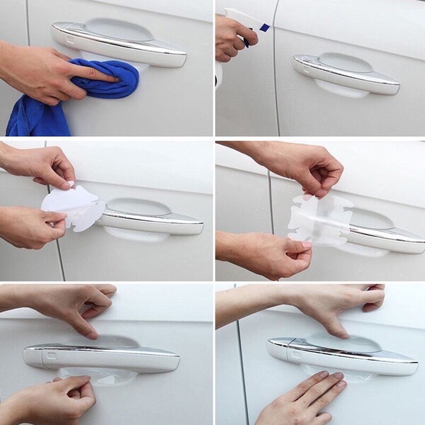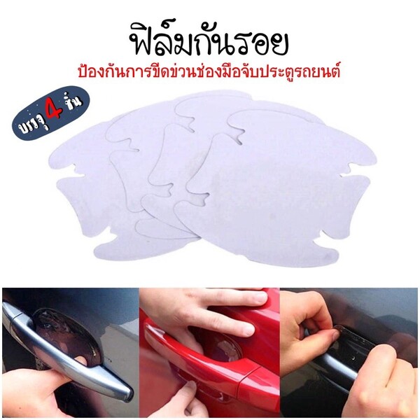 อุปกรณ์ภายในกล่อง ฟิล์มใสกันรอย ตรงที่จับประตูรถ 4 ชิ้น