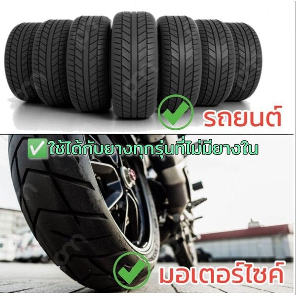ข้อมูลทางเทคนิค ขนาด: 450 ml วิธีใช้ เขย่ากระป๋อง 30 วินาที แล้วหมุนจุกเข้าที่เติมลมล้อ ถ้ามีตะปูอยู่ให้ดึงออกก่อนแล้วฉีดจนหมดกระป๋อง ตัวน้ำยาก็จะไปผสานผิวให้กลับมาใช้งานได้อีกครั้ง กรณียางแตก ลมรั่วออก 100% ใช้ 1 กระป๋องสำหรับ 1 ล้อ(รถยนต์) เติมเสร็จสามารถวิ่งกลับบ้านหรือหาที่ปะยางได้ในระยะ ทาง 150 กิโลเมตร ถ้าตะปูตัวเล็กหรือลูกแม็ก ไม่ต้องหาที่ปะยาง ฉีดตัวนี้เข้าไปแล้วใช้ได้ตลอด หมายเหตุ : ไม่สามารถใช้กับล้อที่รั่วตรงจุ๊บ แผลใหญ่หรือแผลฉีกขาดได้